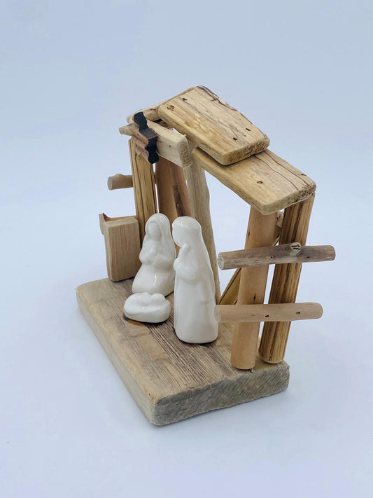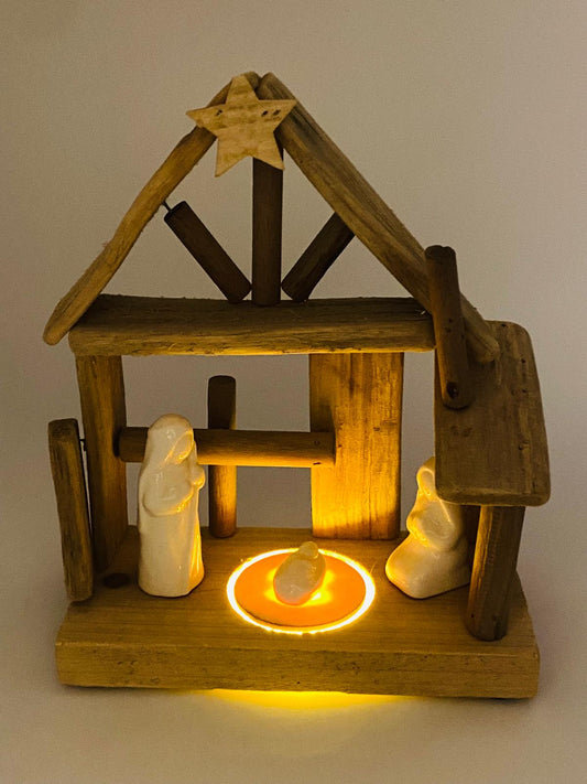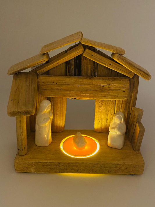 Krippenstall aus Treibholz mit LED Beleuchtung
