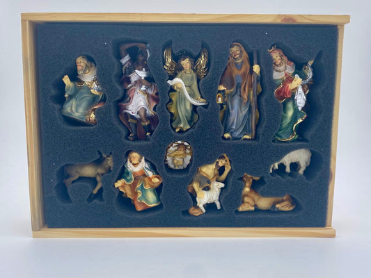 Krippenfiguren 9 teilig Nativity figures handdekoriert