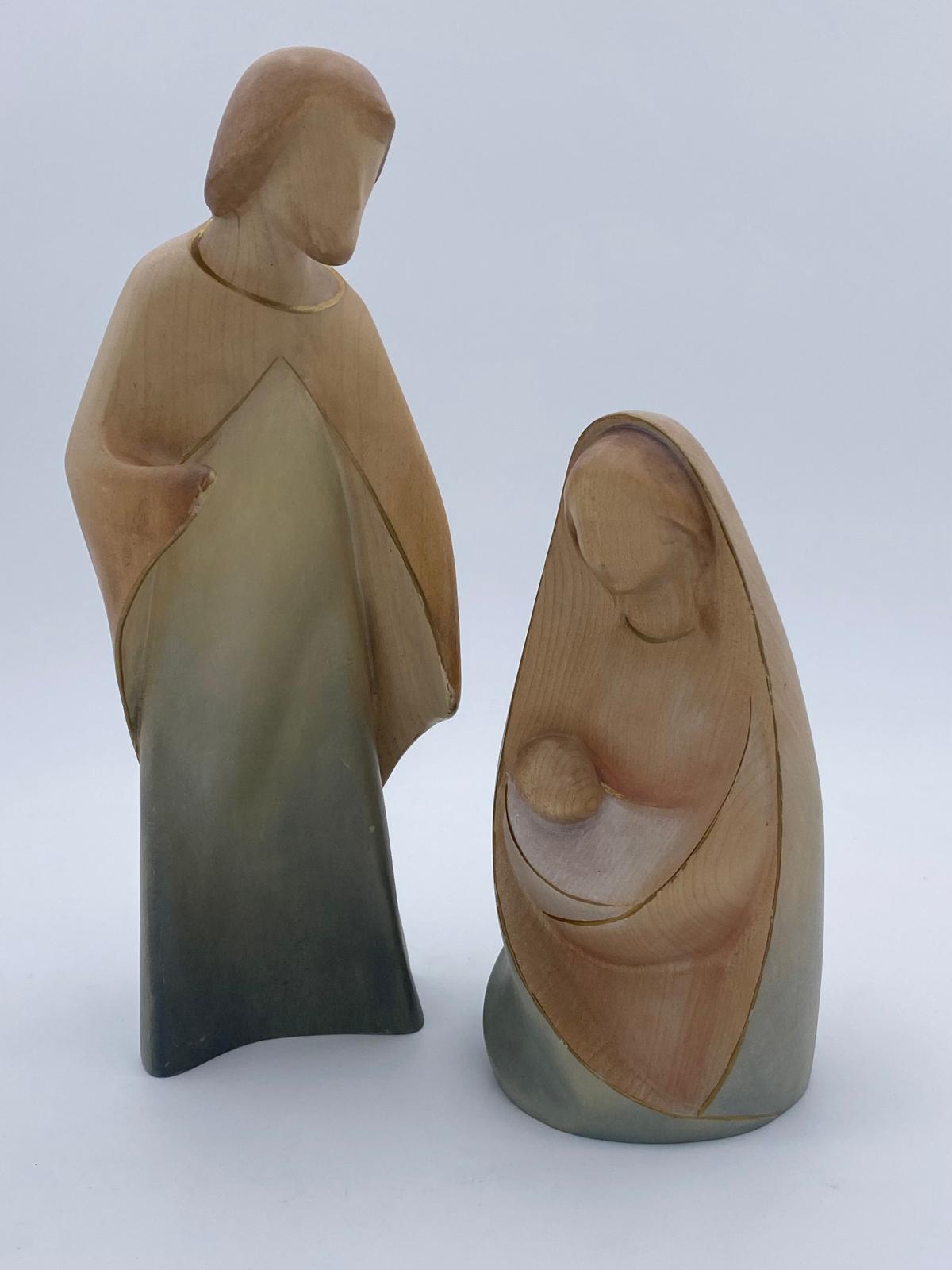 Entdecken Sie die Schönheit der Weihnachtsbotschaft in einem zeitgemäßen Design: Die Blockkrippe „Die Freude” ist ein Kunstwerk, das Tradition und Moderne harmonisch vereint. Die zwei stilisierten Figuren – Maria mit dem Jesuskind und Josef – erzählen eine Geschichte von Liebe, Hoffnung und Freude.