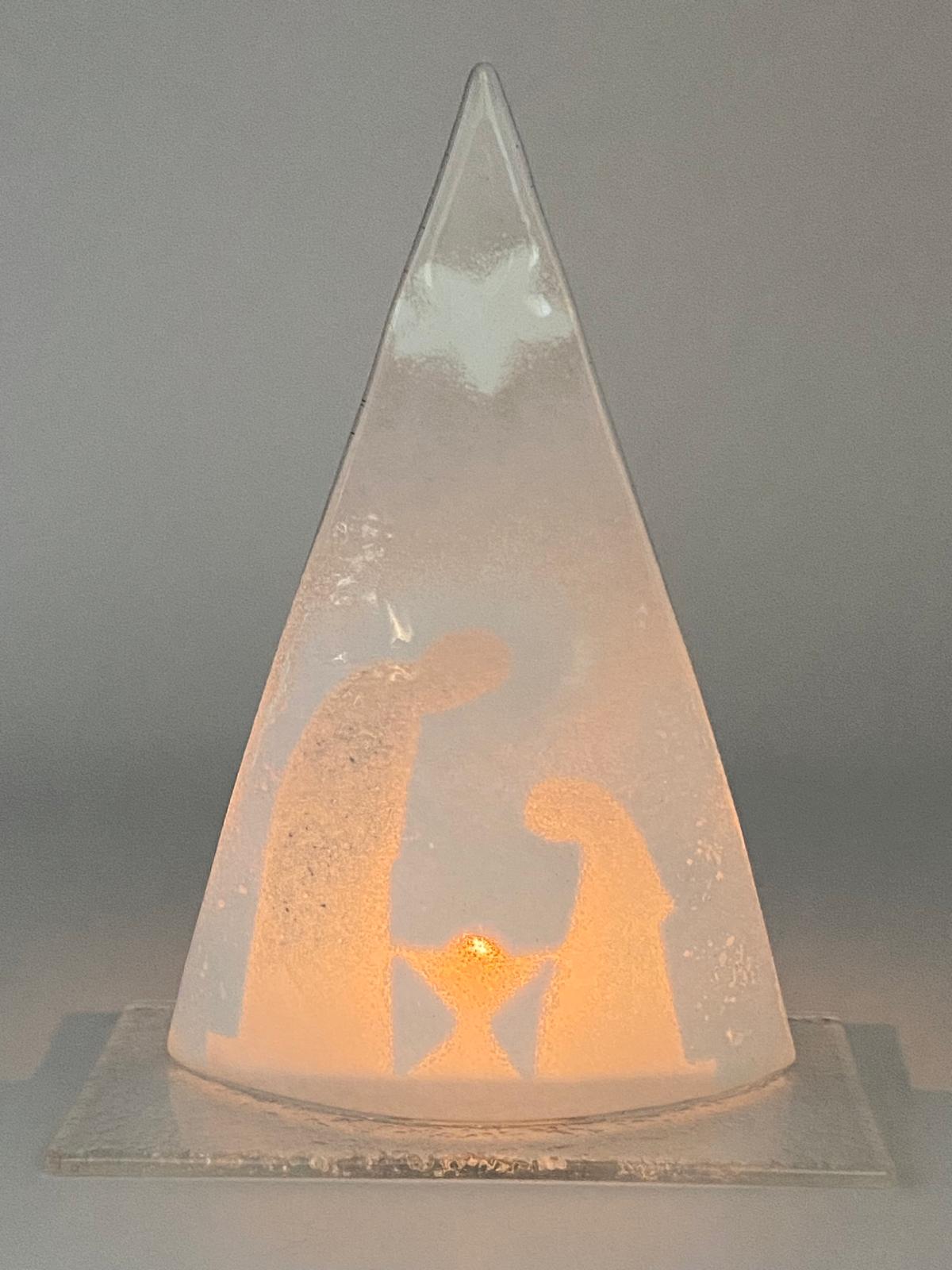 Dieses kunstvolle Glasobjekt (20 cm hoch) vereint die Schönheit traditioneller Handwerkskunst und moderne Eleganz. In aufwendiger Fusingtechnik verschmelzen Glasteile bei 800-900 °C zu einem farbenprächtigen Unikat. Jedes Stück ist ein Meisterwerk, teilweise von Hand beschriftet – ideal für eine stimmungsvolle Weihnachtsdekoration oder als besonderes Geschenk!