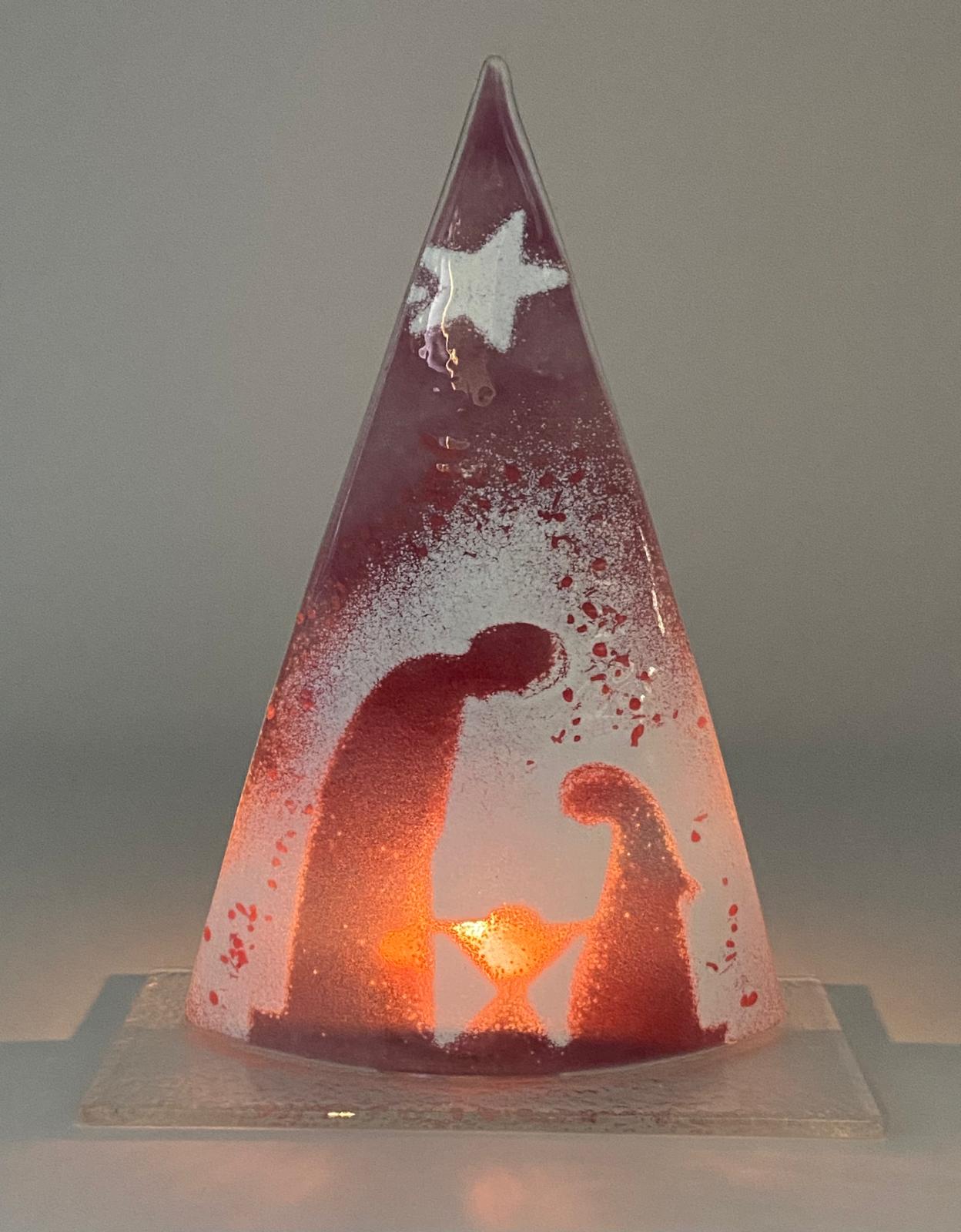 Dieses kunstvolle Glasobjekt (20 cm hoch) vereint die Schönheit traditioneller Handwerkskunst und moderne Eleganz. In aufwendiger Fusingtechnik verschmelzen Glasteile bei 800-900 °C zu einem farbenprächtigen Unikat. Jedes Stück ist ein Meisterwerk, teilweise von Hand beschriftet – ideal für eine stimmungsvolle Weihnachtsdekoration oder als besonderes Geschenk!