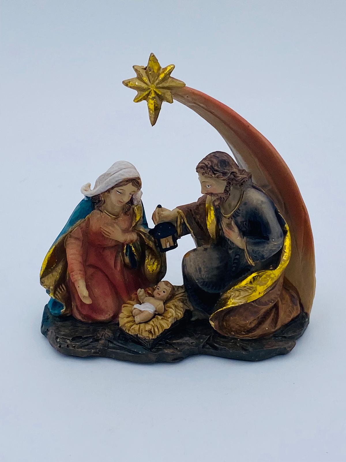 Heilige Familie unterm Stern – liebevoll bemalt mit goldenen Akzenten