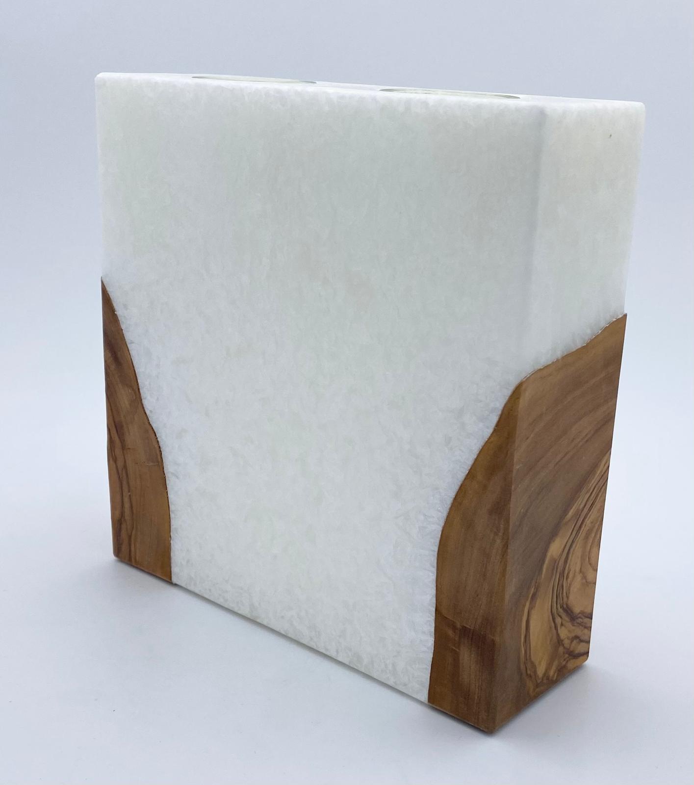 Jeder Kerzenrohling wird mit zwei stilvollen Holzeinlagen und zwei Teelichtern geliefert, wobei Größe, Farbton und Maserung des Holzes bei jedem Stück variieren – so wird jede Kerze zu einem unverwechselbaren Unikat.