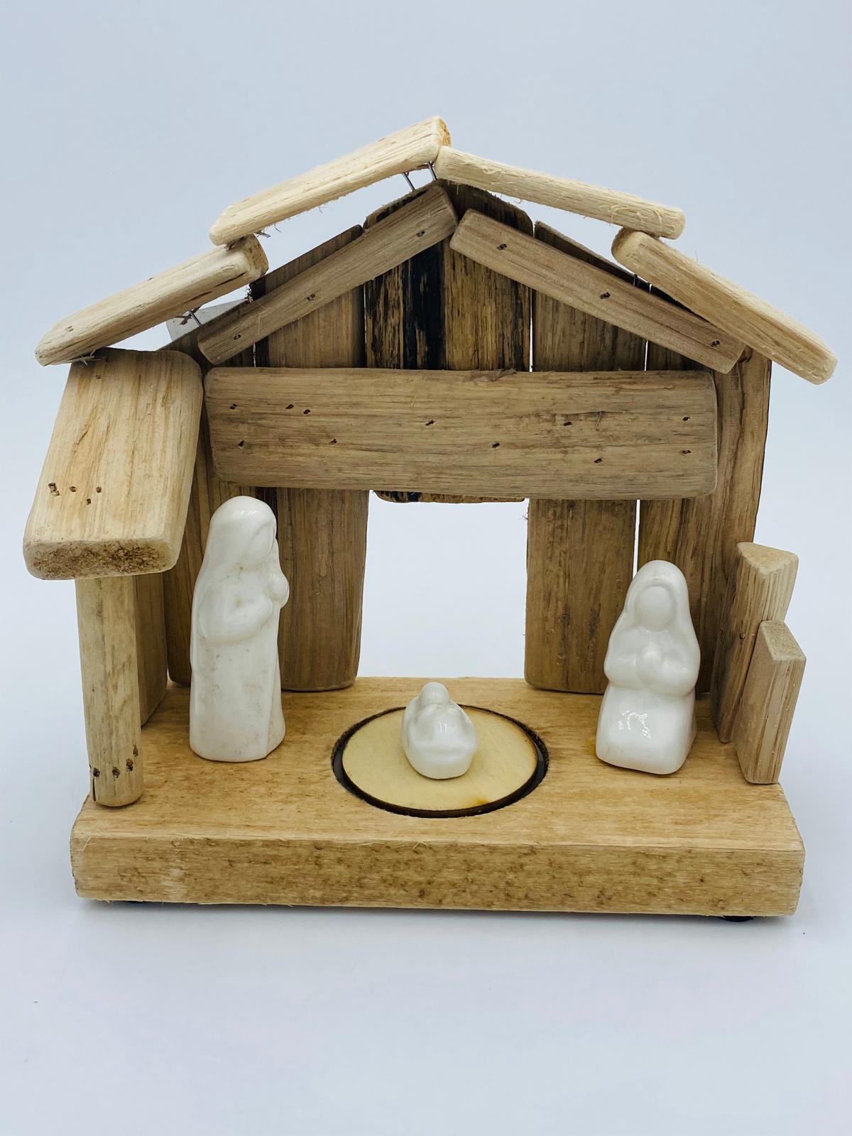 Krippenstall aus Treibholz mit LED-Beleuchtung – Stimmungsvoll & Einzigartig 🌟