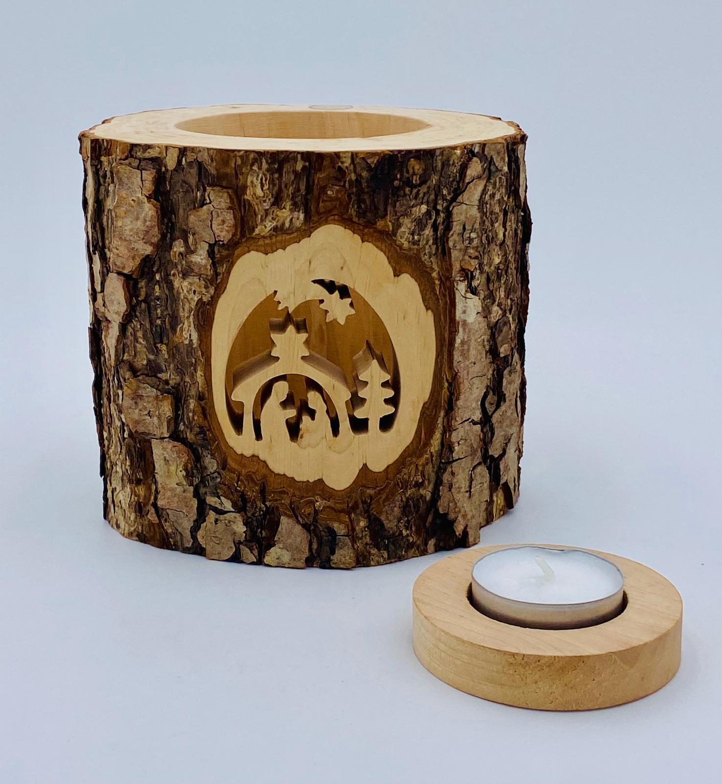Holen Sie sich die Magie der Natur in Ihre vier Wände mit unserem handgeschnitzten Stimmungsleuchter aus Baumstamm – ein Meisterwerk italienischer Handwerkskunst! Jeder Leuchter wird aus hochwertigem Laubholz gefertigt und behält dabei die natürliche Rinde für eine rustikale und authentische Optik. Das unbehandelte Holz verleiht dem Design eine zeitlose Eleganz und fügt sich nahtlos in jede Einrichtung ein, von modern bis ländlich.
