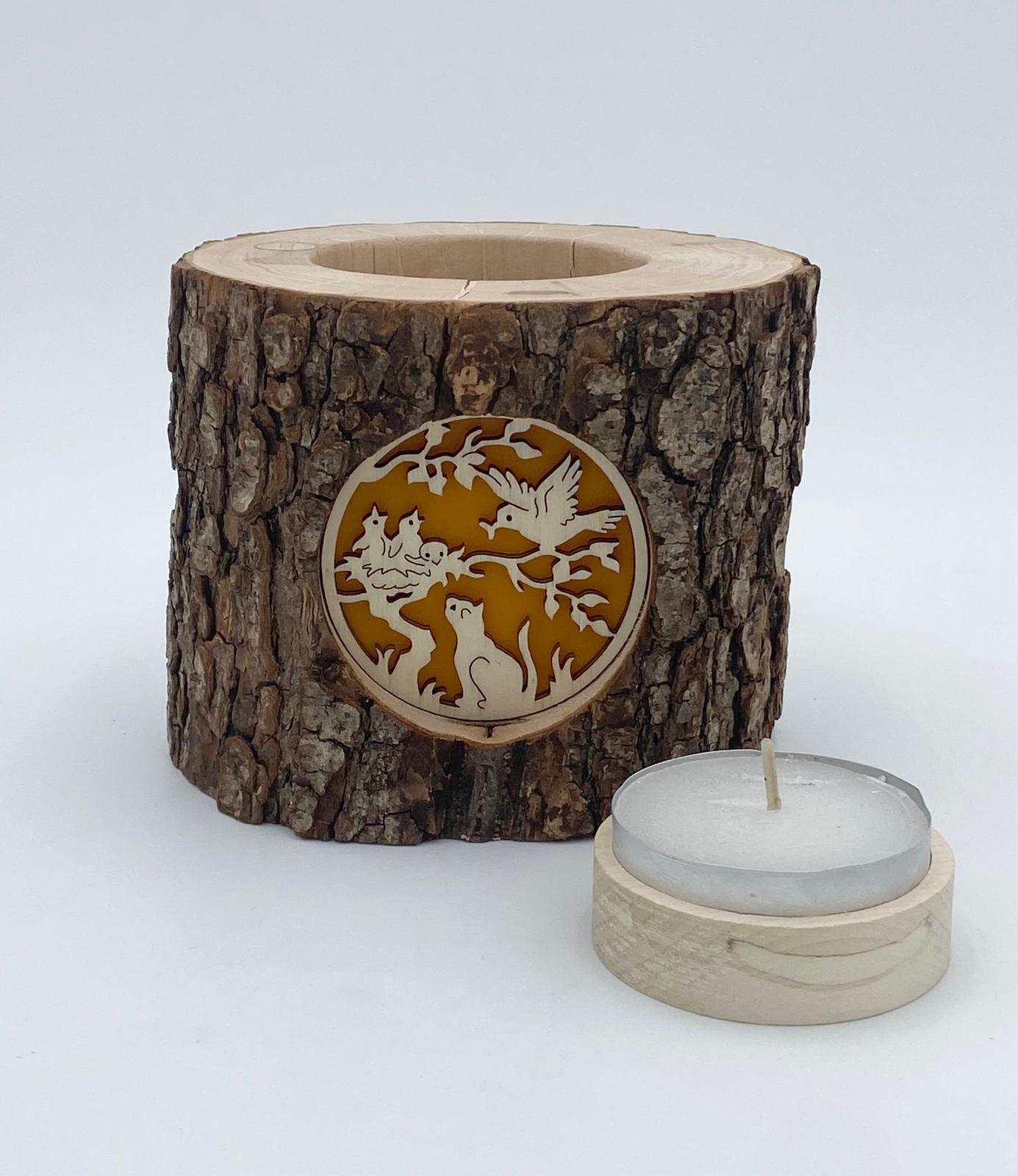 Stimmungsleuchter im Holzstamm Tiermotiv